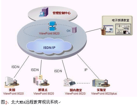 北京大學(xué)是我國(guó)首批被確定開(kāi)展現(xiàn)代遠(yuǎn)程教育試點(diǎn)的院校之一,自1999年起至今,北京大學(xué)現(xiàn)代遠(yuǎn)程教育已經(jīng)遍布全國(guó)18個(gè)省市,2002年北大MBA作為國(guó)內(nèi)先進(jìn)的遠(yuǎn)程教育項(xiàng)目作為一項(xiàng)重要的國(guó)際間的教育交流項(xiàng)目,欲通過(guò)建設(shè)視訊系統(tǒng)和美國(guó)互通,進(jìn)行國(guó)際間的MBA遠(yuǎn)程教學(xué),同時(shí)可以進(jìn)行幾個(gè)分點(diǎn)之間的交互式視頻會(huì)議,提高學(xué)習(xí)效率。