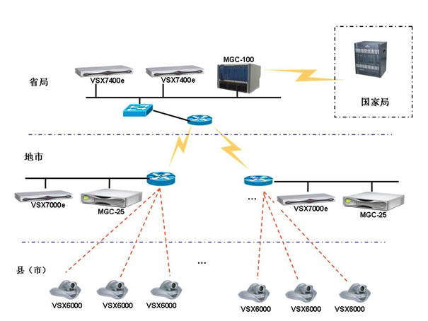 我們把視頻會(huì)議系統(tǒng)分為三層:   “湖南省國稅局視頻會(huì)議系統(tǒng)”的傳輸承載層為湖南省國稅現(xiàn)有的傳輸網(wǎng)絡(luò)。