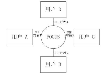 緊耦合會議的邏輯架構(gòu)圖如圖三所示。會議中的核心是"會議中心(conference focus)",每一個會議都有一個會議中心,由一個URI標(biāo)識,用戶通過聯(lián)系這個URI參加到一個會議中去。會議中心和用戶之間的拓?fù)浣Y(jié)構(gòu)為星性結(jié)構(gòu)。會議中心為用戶提供并維持一個信令連接,并且可以執(zhí)行會議策略,實現(xiàn)對會議的控制和管理。