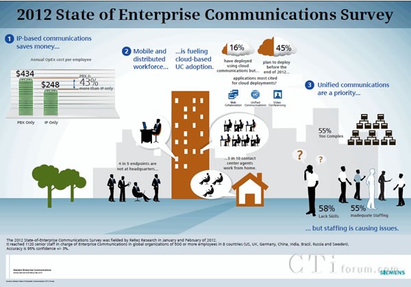 “此項(xiàng)研究的發(fā)現(xiàn)證實(shí)了我們從客戶那里得來的反饋:基于IP的統(tǒng)一通信不僅提高了終端用戶的生產(chǎn)效率,還節(jié)約了公司成本,”西門子企業(yè)通信北美區(qū)總裁兼全球市場(chǎng)總監(jiān)Chris Hummel說,“企業(yè)通信正處于從PBX到IP以及從客戶機(jī)房到云部署的過渡時(shí)期。西門子企業(yè)通信致力于為我們的客戶提供靈活開放的企業(yè)通信解決方案,以適應(yīng)其業(yè)務(wù)需要。這有助于降低IT技術(shù)的復(fù)雜性,更好地支持企業(yè)員工的移動(dòng)性需求,并幫助企業(yè)完成這種轉(zhuǎn)變!