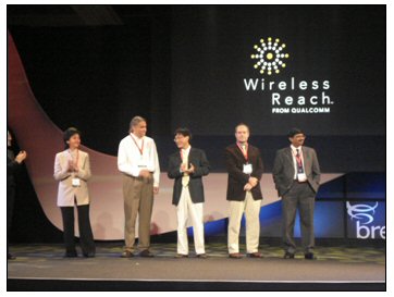 同時(shí),作為“無(wú)線關(guān)愛(ài)”計(jì)劃brew應(yīng)用基金的獲獎(jiǎng)?wù),在伊麗莎白舞廳接受了來(lái)自高通的最佳公共服務(wù)應(yīng)用獎(jiǎng)?lì)C獎(jiǎng)(頒發(fā)給為在全球范圍內(nèi)促進(jìn)欠發(fā)達(dá)地區(qū)經(jīng)濟(jì)和社會(huì)發(fā)展而做出積極貢獻(xiàn)的最佳應(yīng)用)。同時(shí)獲此支持的還有印度Tata 咨詢(xún)服務(wù)公司、美國(guó)BeWell移動(dòng)技術(shù)有限公司、美國(guó)加州大學(xué)伯克利分校和印度尼西亞萬(wàn)隆技術(shù)學(xué)院。