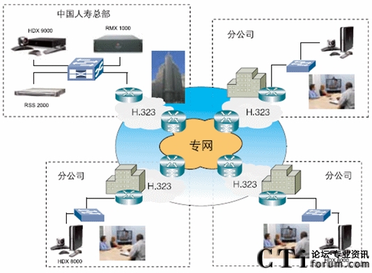 中國(guó)人壽的信息化建設(shè)水平非常的高,在建設(shè)高清視頻會(huì)議系統(tǒng)前,已經(jīng)擁有了覆蓋35個(gè)分公司的全國(guó)性骨干視頻會(huì)議網(wǎng)絡(luò),同時(shí)還擁有1套基于視頻服務(wù)器和桌面終端的軟件視頻會(huì)議系統(tǒng),各個(gè)分公司也相繼建設(shè)了各分公司的視頻會(huì)議系統(tǒng),為了保護(hù)前期的投資,新建的高清視頻會(huì)議系統(tǒng)必須與原有系統(tǒng)兼容,實(shí)現(xiàn)音視頻的互通。