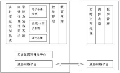 實時教學(xué)在一般情況下的實現(xiàn)過程如下: 實時教學(xué)開始后,通過攝像頭和麥克風(fēng)現(xiàn)場采集教師講課的視頻和音頻作為編碼器輸入,經(jīng)編碼計算機(jī)編碼為媒體流,并發(fā)送到流媒體服務(wù)器,然后服務(wù)器啟動服務(wù)模塊,通過多播發(fā)布媒體流,學(xué)生用客戶端播放器接受和播放媒體流。為了提供交互性,在課件制作中可以相應(yīng)地增加所需的功能。例如在課堂上回答問題或討論問題。教師控制發(fā)言權(quán),得到教師的允許后,學(xué)生可以回答問題或同其他同學(xué)交流來討論問題。這樣遠(yuǎn)程面授就可以成為現(xiàn)實了,學(xué)生只需要一臺PC、一個Modem就可以坐在家里聽課并實時地和老師交互。