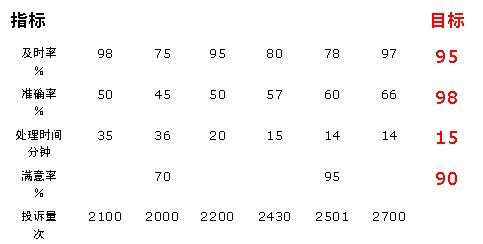從準(zhǔn)確率的角度來(lái)看:各月指標(biāo)值都低于目標(biāo)值,處于沒(méi)有達(dá)標(biāo)狀態(tài),但從1-6月各月準(zhǔn)確率的變化情況來(lái)看,其處于一個(gè)持續(xù)改進(jìn)狀態(tài)(連續(xù)三點(diǎn)以上的上升可認(rèn)為是持續(xù)改進(jìn)),即說(shuō)明通過(guò)管理控制,該指標(biāo)得到了持續(xù)改善。因此,對(duì)準(zhǔn)確率的管理是有效的,雖然目前還沒(méi)有達(dá)到目標(biāo)值。