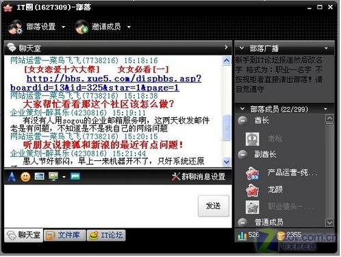 在群聊的過(guò)程中兩款軟件都各特色。百度Hi的特色是當(dāng)用戶向群中一個(gè)不是自己好友的人發(fā)送信息時(shí),該用戶會(huì)在百度網(wǎng)頁(yè)短信息中可以收到消息,此項(xiàng)功能十分適合上班時(shí)不能打開(kāi)聊天軟件的朋友使用。Lava則是將群功能體現(xiàn)的更加強(qiáng)大些,除了消息發(fā)送外可以建立屬于群部落的文件庫(kù),就是這個(gè)部落的藏寶室,有什么好東東都可以放進(jìn)去,簡(jiǎn)直就是超大的網(wǎng)絡(luò)硬盤(pán)。(圖9、圖10)