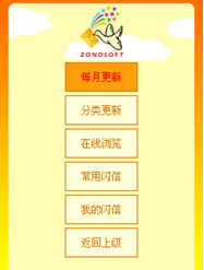 如果想在軟件中安裝更多的閃信動(dòng)畫,還可以通過(guò)軟件的:“更新閃信“里的分類更新、在線瀏覽選項(xiàng)選擇更新更多的閃信動(dòng)畫;蛘呤堑卿洝笆謾C(jī)閃信網(wǎng)www.13Flash.com”網(wǎng)站瀏覽下載更多的動(dòng)畫內(nèi)容。網(wǎng)站還提供了閃信動(dòng)畫的收藏定制功能,可以根據(jù)自己的喜好定制自己喜愛(ài)的閃信動(dòng)畫作為收藏,更方便的發(fā)送給朋友具有個(gè)性的閃信