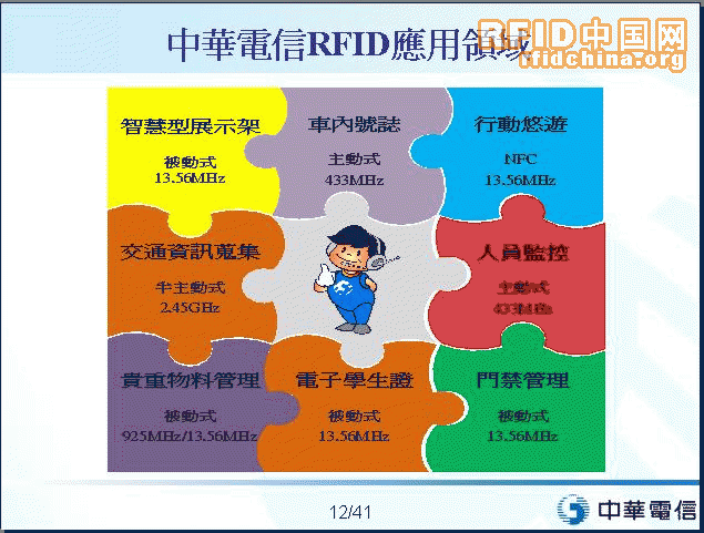 目前,中華電信主要鎖定的RFID應(yīng)用領(lǐng)域包括:車牌號(hào)碼管理、交通管理、重要物品管理、人員監(jiān)控、門禁管理、電子學(xué)生證管理等。