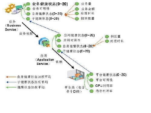 CI/KPI模型的建立,成功地將傳統(tǒng)監(jiān)控系統(tǒng)的監(jiān)控難點轉(zhuǎn)變?yōu)榱咙c,通過對模型中父子業(yè)務間關系、業(yè)務與后臺資源間關系的結(jié)構(gòu)化梳理,多維度數(shù)據(jù)的采集計算,有效量化了業(yè)務健康度指標。同時,模型中所綜合的業(yè)務可用性、業(yè)務辦理量、后臺資源使用情況等全方位信息,尤為適合公司管理人員了解業(yè)務通體運營情況。