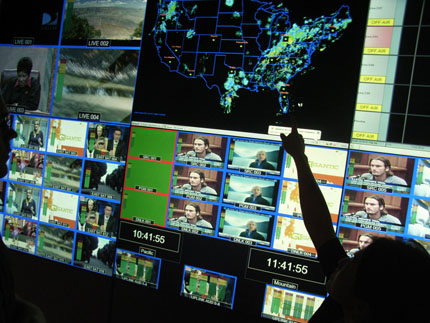 MediaFLO工作中心屏幕墻,為保證信號發(fā)送正常,天氣也是監(jiān)控目標(biāo)之一