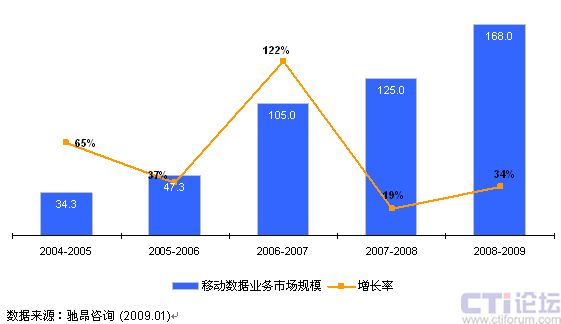 2008年中國移動數(shù)據(jù)業(yè)務(wù)市場規(guī)模達(dá)168億美元
