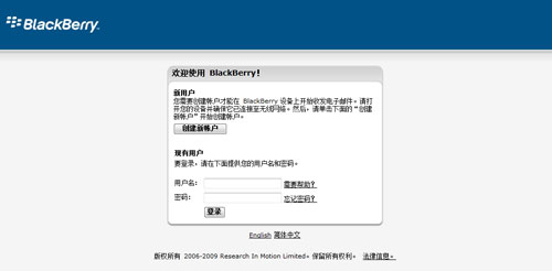 中電信黑莓網(wǎng)絡(luò)服務(wù)注冊頁面曝光