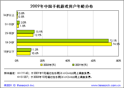 2009年手機(jī)游戲用戶以男性和青少年為主
