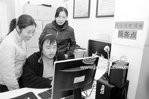 2008年下半年,青山湖區(qū)上海路街辦發(fā)起建立“網(wǎng)絡調(diào)解”工作機制,以互聯(lián)網(wǎng)為平臺,建立網(wǎng)上調(diào)解QQ群,采取視頻對接、語音交流的方式,將律師、法官、警官等“三官四員”和各方面專業(yè)人士聯(lián)系起來,及時化解矛盾糾紛。