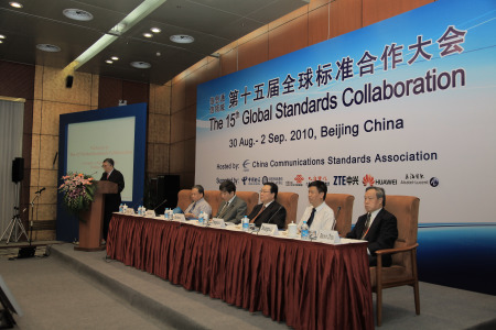 8月30日至9月2日,信息通信領(lǐng)域“第15屆全球標(biāo)準(zhǔn)合作大會”(GSC-15)在北京隆重召開,會議由中國通信標(biāo)準(zhǔn)化協(xié)會(CCSA)主辦。來自國際電信聯(lián)盟(ITU)和北美、歐洲、中日韓的八個伙伴標(biāo)準(zhǔn)化組織(日本無線工業(yè)及商貿(mào)聯(lián)合會(ARIB)、中國通信標(biāo)準(zhǔn)化協(xié)會(CCSA)、歐洲電信標(biāo)準(zhǔn)化協(xié)會(ETSI)、加拿大ICT標(biāo)準(zhǔn)咨詢委員會(ISACC)、國際電信聯(lián)盟(ITU)、美國電信工業(yè)解決方案聯(lián)盟(ATIS)、美國電信行業(yè)協(xié)會(TIA)、韓國電信技術(shù)協(xié)會(TTA)和日本電信技術(shù)委員會(TTC)),以及ISO/IEC JTC1、ANSI、OMA、BBF、中國電子工業(yè)標(biāo)準(zhǔn)化技術(shù)協(xié)會、TD-SCDMA產(chǎn)業(yè)聯(lián)盟、感知中國物聯(lián)網(wǎng)聯(lián)盟等19家觀察員的共140多名代表參加了此次會議。