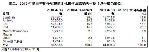 第三季度,智能手機銷售超過8,100萬部。Android銷售占全球智能手機銷售總量的25.5%,成為第二大操作系統(tǒng)。