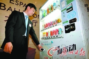昨日,深圳本土研發(fā)的手機支付自動售貨機亮相,市民直接拿手機在自動售貨機上一刷,就能買飲料和食品。該系統(tǒng)支付主要依靠全球首款智能SD手機存儲支付卡,市民只需將此卡插入手機,便能輕松實現(xiàn)手機支付。有關(guān)負責人表示,或?qū)研乱淮詣邮圬洐C投入大運村供運動員使用。