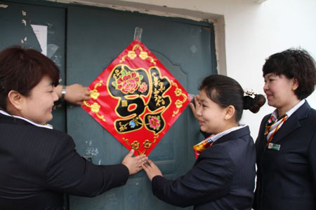 “阿姨,春節(jié)快到了,我們來看看您,前兩天已經(jīng)幫您把電充上了,這次給您帶了個手電,用著它以后到地下室可以照個亮!标(duì)長阿依古麗向丁阿姨說明來意,還跟丁阿姨試了試,手電是充電式的,不用換電池,丁阿姨挺高興的。臨走時(shí),阿依古麗還在她家門上貼了個大紅的“!弊,祝福老人家新年快樂。