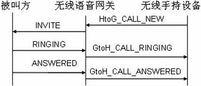 當(dāng)用戶通過無線手持設(shè)備撥打一個號碼時,無線手持設(shè)備將發(fā)送一個HtoG_CALL_ NEW的內(nèi)部會話信令連同呼叫的號碼給無線語音網(wǎng)關(guān),無線語音網(wǎng)關(guān)收到該信令后,將根據(jù)該信令構(gòu)造相應(yīng)的SIP消息并發(fā)送到外部網(wǎng)絡(luò)。當(dāng)無線語音網(wǎng)關(guān)收到來自被叫方表示振鈴信息的暫時應(yīng)答RINGING時,將發(fā)送一個GtoH_CALL_RINGING的內(nèi)部會話信令給手持設(shè)備。當(dāng)無線語音網(wǎng)關(guān)收到來自被叫方表示應(yīng)答的信息ANSWERED時,語音網(wǎng)關(guān)將啟動RTP線程并發(fā)送一個GtoH_CALL_ANSWERED的內(nèi)部會話信令給手持設(shè)備以通知被叫方已應(yīng)答。此時手持設(shè)備開啟語音進(jìn)程,與被叫方實現(xiàn)通話。