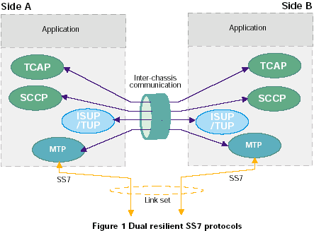 在使用Dialogic NetStructure SS7設(shè)備的SS7環(huán)境中,為了得到"五個9"有效性和提高容錯能力,可以將一個SS7信令端點擴展在兩個機箱上。通過SS7節(jié)點在多個機箱上應(yīng)用可以將信令點的功能分離,將多機箱內(nèi)的硬件處理器相互獨立出來,在一個處理器發(fā)生故障的情況下,另外一個處理器還能夠繼續(xù)工作,整個系統(tǒng)還可以正常運行。
