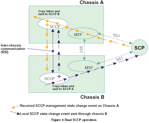 SCCP通過支持可尋址的子系統(tǒng)概念提高了消息傳遞部分(MTP)的路由能力。所有已知的本地和遠端子系統(tǒng)的路由可用性(允許狀態(tài)或禁止狀態(tài))在SCCP層中進行管理。在一個由N個SCCP層(或多個SCCP的實例)組成作為同一節(jié)點編碼的系統(tǒng)中,用戶應(yīng)用程序和遠端節(jié)點需要能夠通過任何SCCP實例交換SCCP數(shù)據(jù)消息,并且希望每個SCCP中的路由表都是相同的。為了達到這個目的,需要使用廣播機制增強SCCP層,這種機制將本地或遠端的路由狀態(tài)的任何改變發(fā)送到廣播任務(wù)。廣播任務(wù)負責將路由變化傳送到N-1(其他)SCCP實例。在雙系統(tǒng)中,廣播任務(wù)只是另一個SCCP層,這兩層使用基于消息的API進行通信。在一個雙機箱/子機架環(huán)境中,這些消息可以由RSI和TCP/IP組合來傳遞。